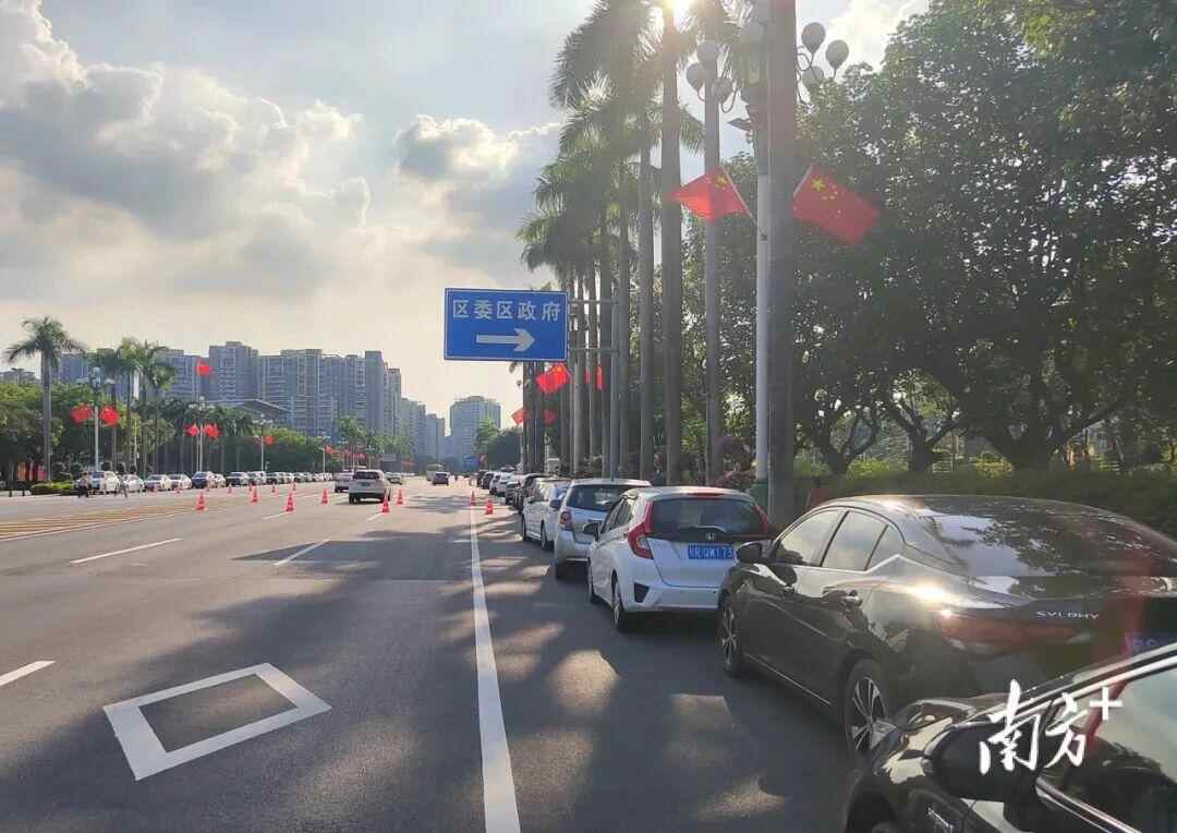 “路边停也不抄牌,放心!只要不影响交通。”10月1日佛山顺德区机关大院开放首日,大院内人潮涌动,大院外车流如织,工作人员引导着市民沿着路边有序停车。