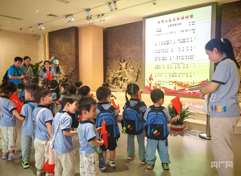 幼儿园小朋友齐唱国歌(央广网记者 冯丽 摄)