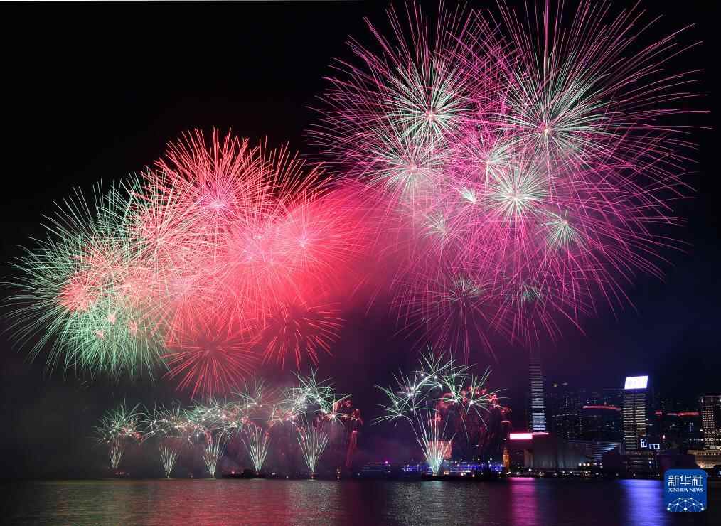 10月1日,香港国庆烟花汇演在维多利亚港举行。