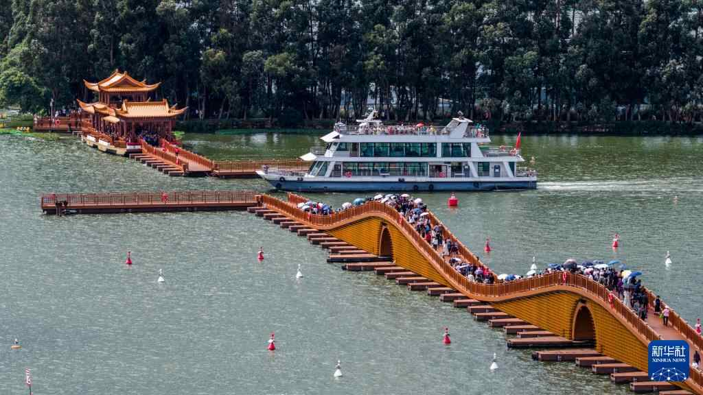 10月1日,位于昆明滇池草海的东风坝开合浮桥正式对市民开放,吸引众多市民、游客前来观光游玩。据了解,东风坝开合浮桥通行全长约514米,桥宽3米,较好地兼顾了人行、游船通航、驻足观景等多方面需求。