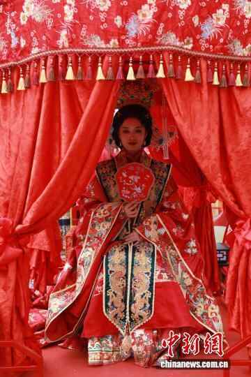 10月1日,位于成都市青白江区的城厢古城热闹非凡,一场十里红妆传统迎亲巡游和宋朝汉婚大秀上演,迎亲队伍中的表演者身穿汉服,穿过古城各条街区,吸引了各地游客围观。成都市青白江区委宣传部供图