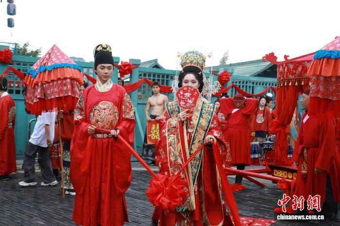 成都城厢古城上演传统迎亲巡游和宋朝汉婚大秀