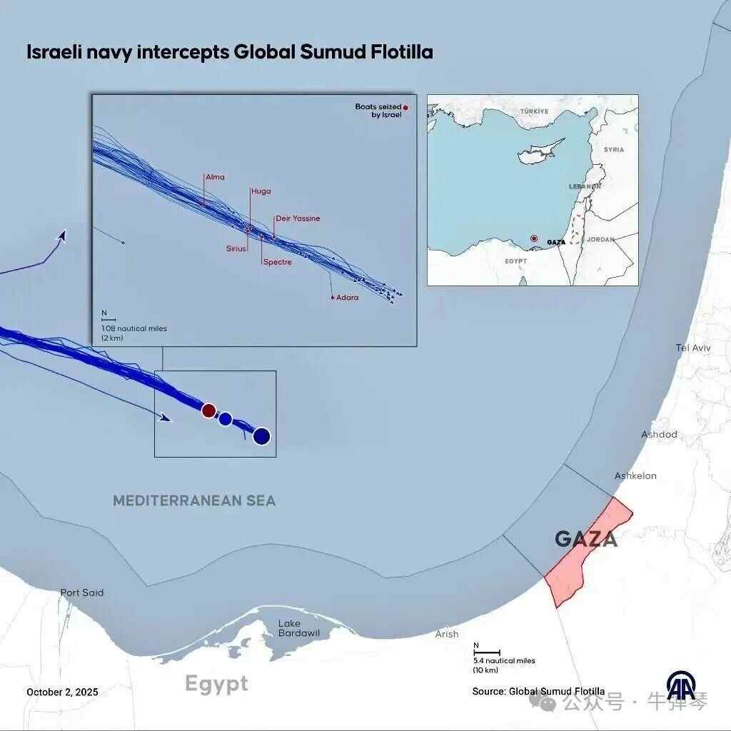 随后消息传出,多艘船只已遭以军扣押,包括通贝里在内的很多人被以军逮捕。
