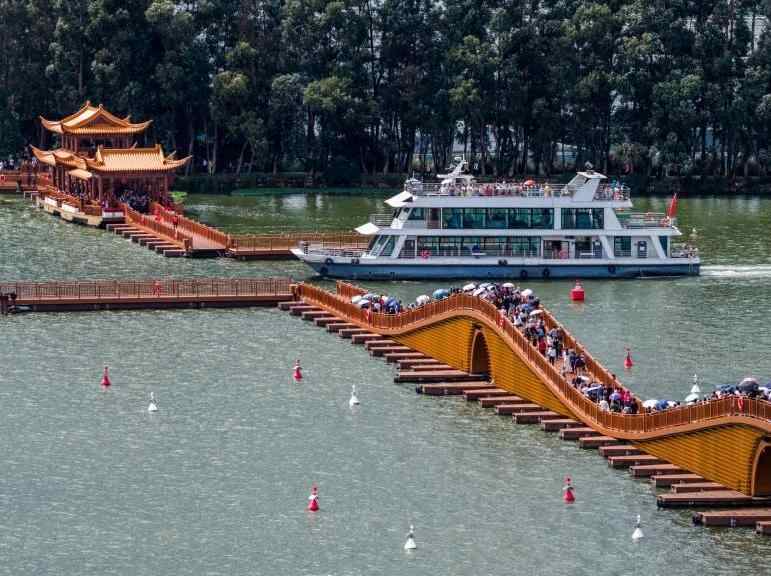 国庆黄金周首日:桂林象鼻山迎客忙 游客畅游山水间