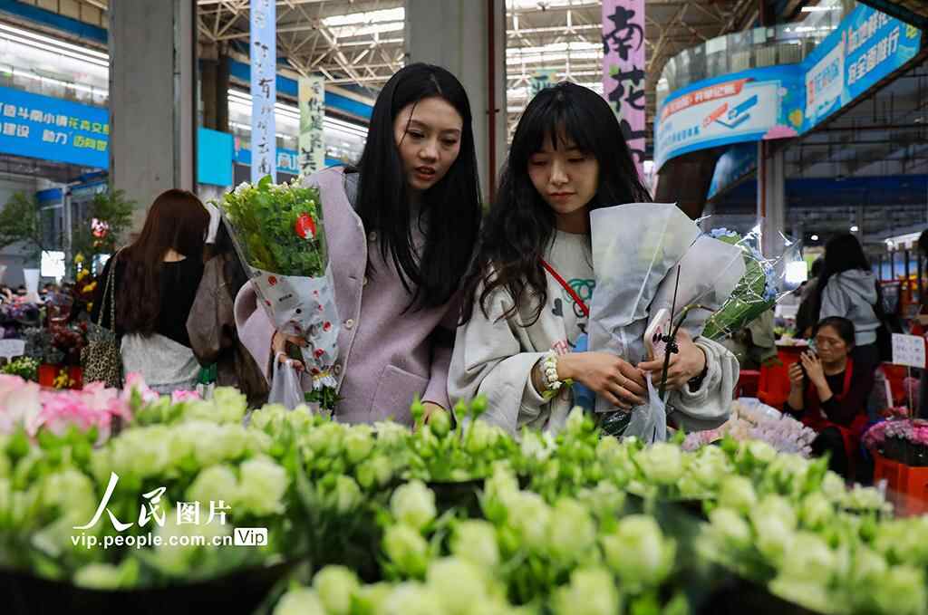 国庆中秋假期,云南旅游持续升温,昆明斗南花卉市场人头攒动,热闹非凡。郑益摄(人民图片网)