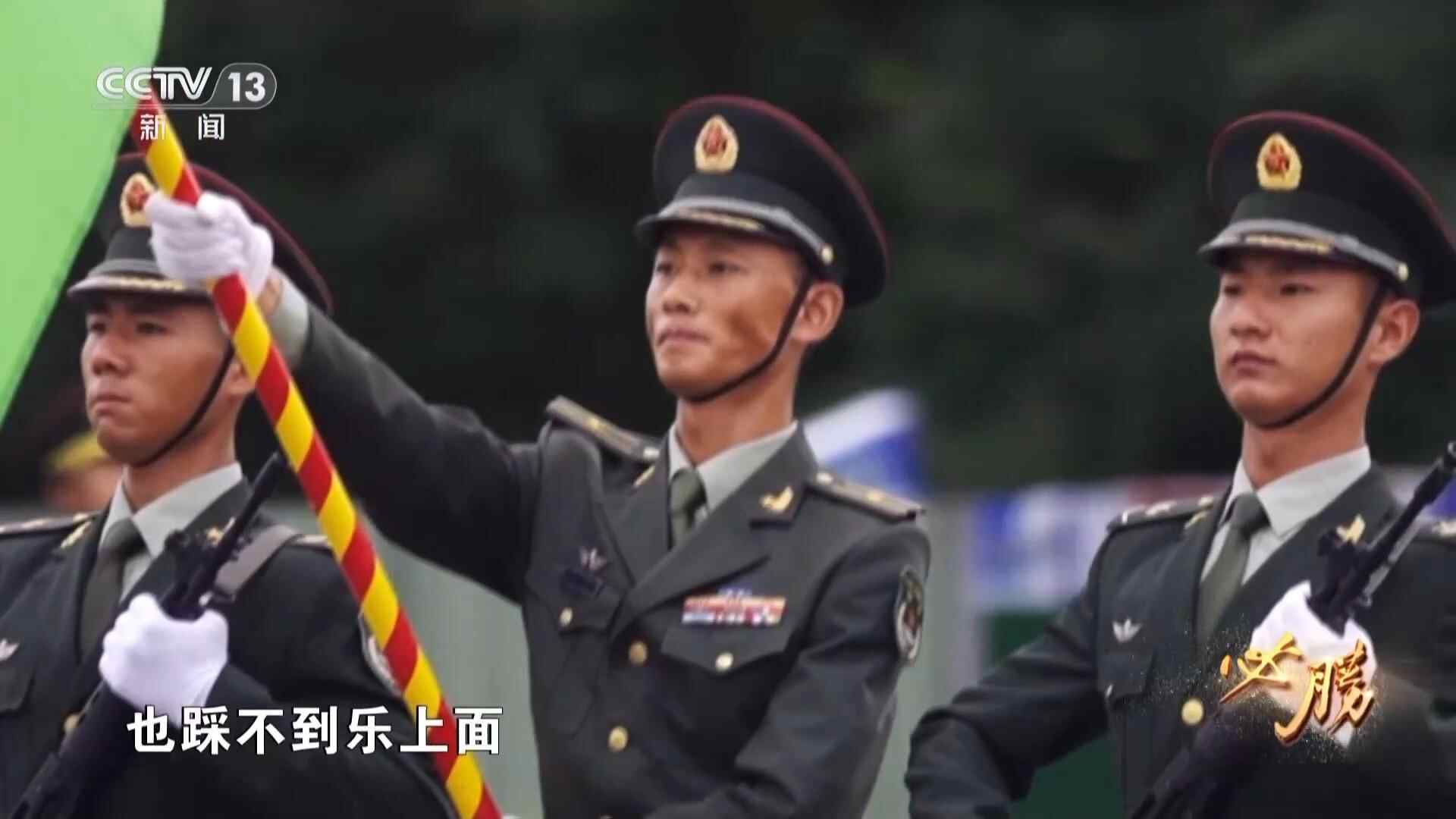 陆军方队擎旗手马瑞介绍,踢正步的脚步声很明显, 踩不到一个点上,也踩不到乐上面。