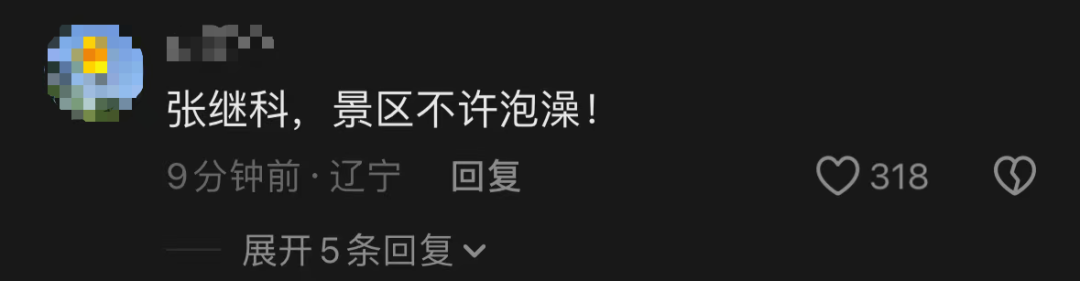 网友在景区调侃道:“张继科,景区不许泡澡!”