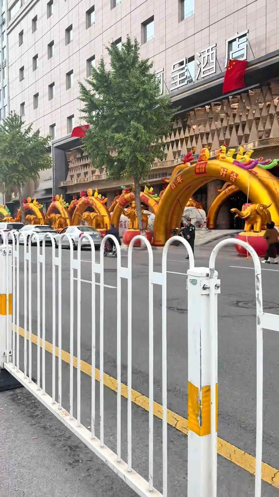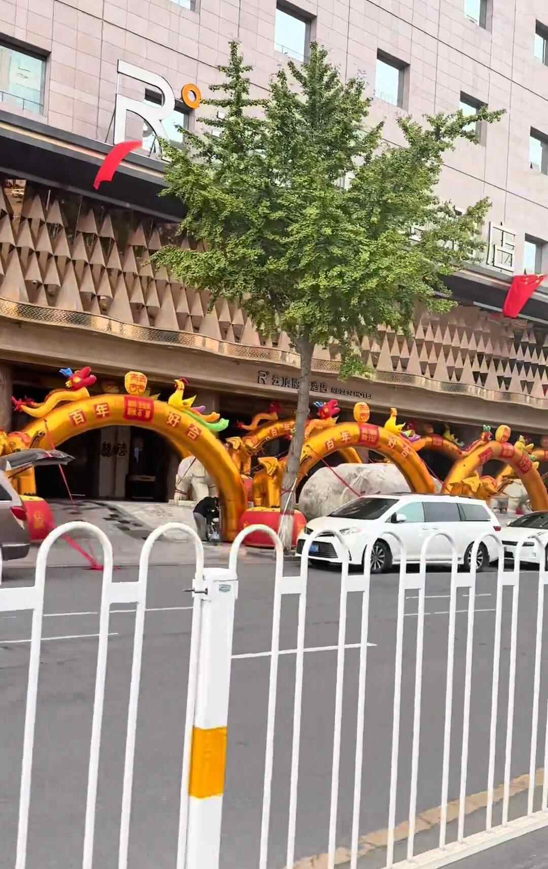 10月1日,有网友发视频称,国庆节当天他路过山西省太原市万达广场云顶丽呈酒店时,发现门口摆放了十余个婚庆充气拱门,场面颇为壮观。