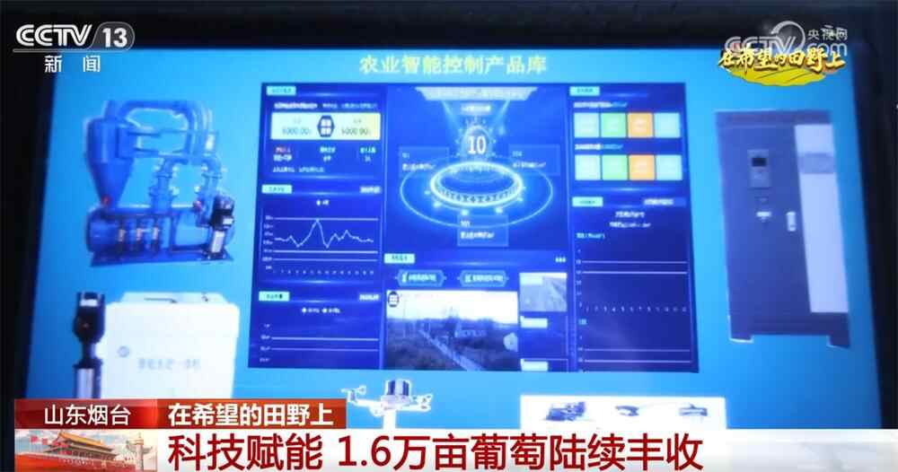 在烟台福山区的一处葡萄种植基地,从田间管理到生长调控,科技手段贯穿每一个环节:垄间防草布实现保墒抑草双重效果,再依托当地优质土壤条件与智能水肥调控,让葡萄皮薄肉细、脆甜多汁,且亩产能够稳定在4500斤,年效益预计达1000万元。