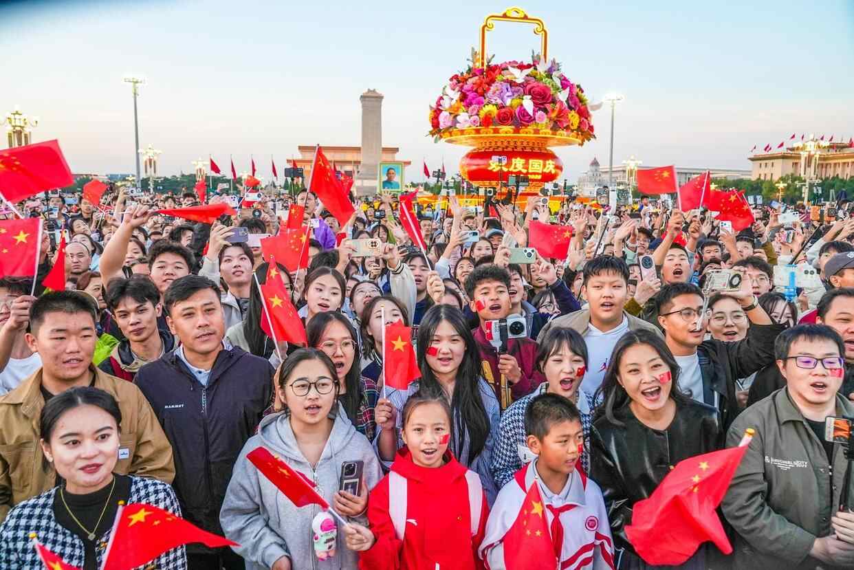 10月1日国庆节清晨,来自全国各地的12.1万名各界群众会聚在天安门广场,观看隆重的升国旗仪式,共同庆祝中华人民共和国成立76周年。大家齐唱国歌,共同见证五星红旗冉冉升起。
