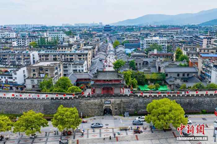 图为古城闪耀“中国红”。(无人机照片)张倩龙 摄