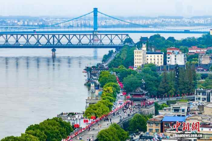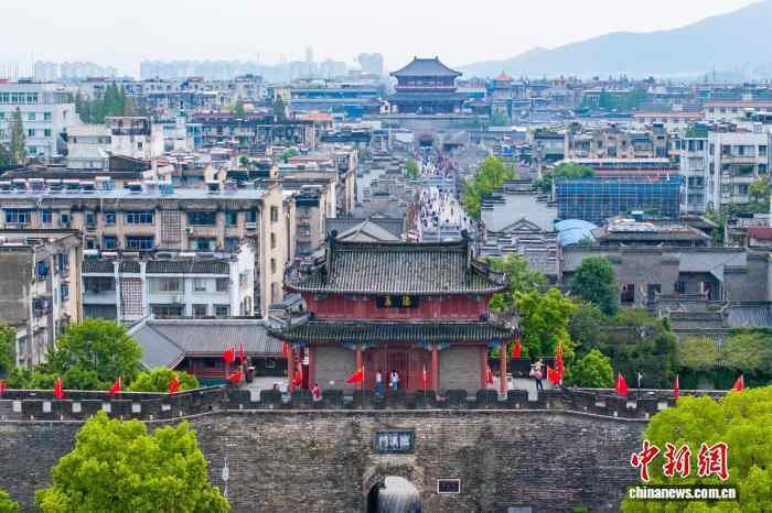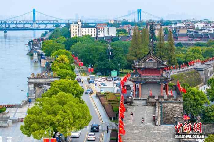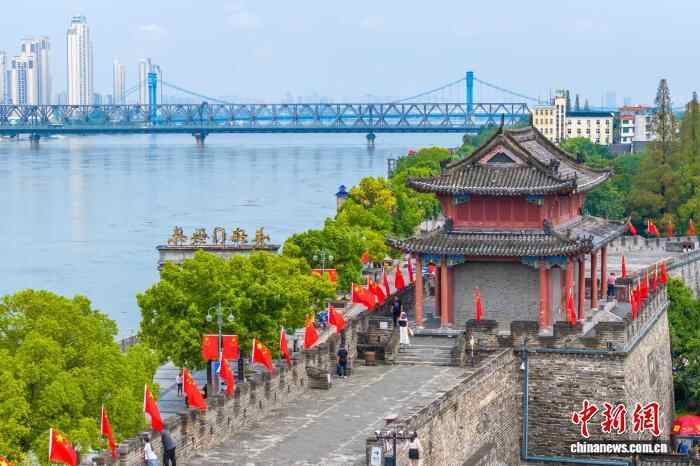 湖北襄阳古城国旗招展 一江两岸风光秀美