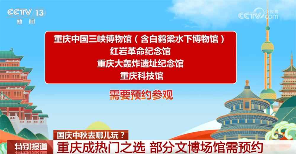 重庆全市文博场馆除重庆中国三峡博物馆(含白鹤梁水下博物馆)、红岩革命纪念馆、重庆大轰炸惨案遗址纪念馆、重庆科技馆需预约参观以外,其他博物馆取消参观预约要求。部分博物馆将延长开放时间,具体时间请关注各博物馆官方网站及公众号。