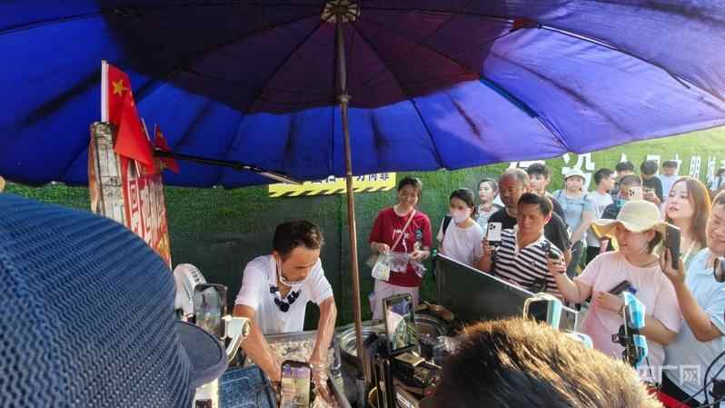 “鸡排哥”凭借脱口秀式的互动,以及“6元鸡排附赠600元情绪价值”火爆出圈,摊位前不仅有许多市民和学生,更有大量外地人慕名而来。