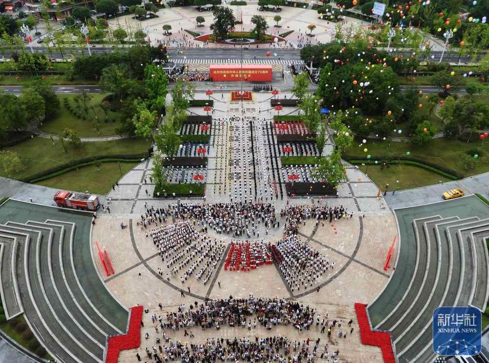 10月1日在四川省达州市人民广场拍摄的升旗仪式。新华社发(邓良奎摄)
