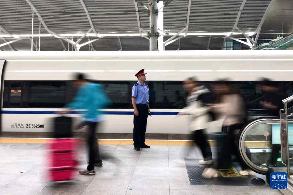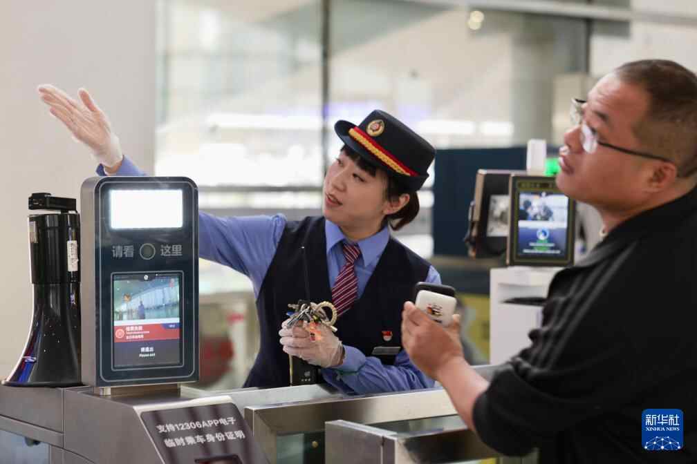 10月6日,在铁路徐州东站,工作人员引导旅客检票乘车。