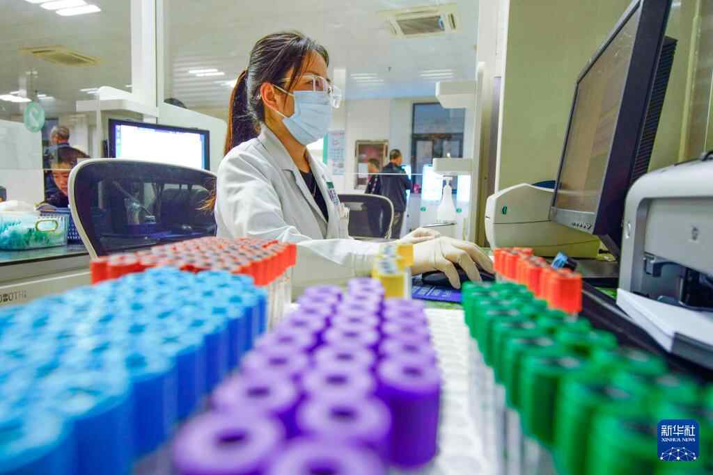 10月6日,河北省遵化市人民医院检验科的医生在工作。