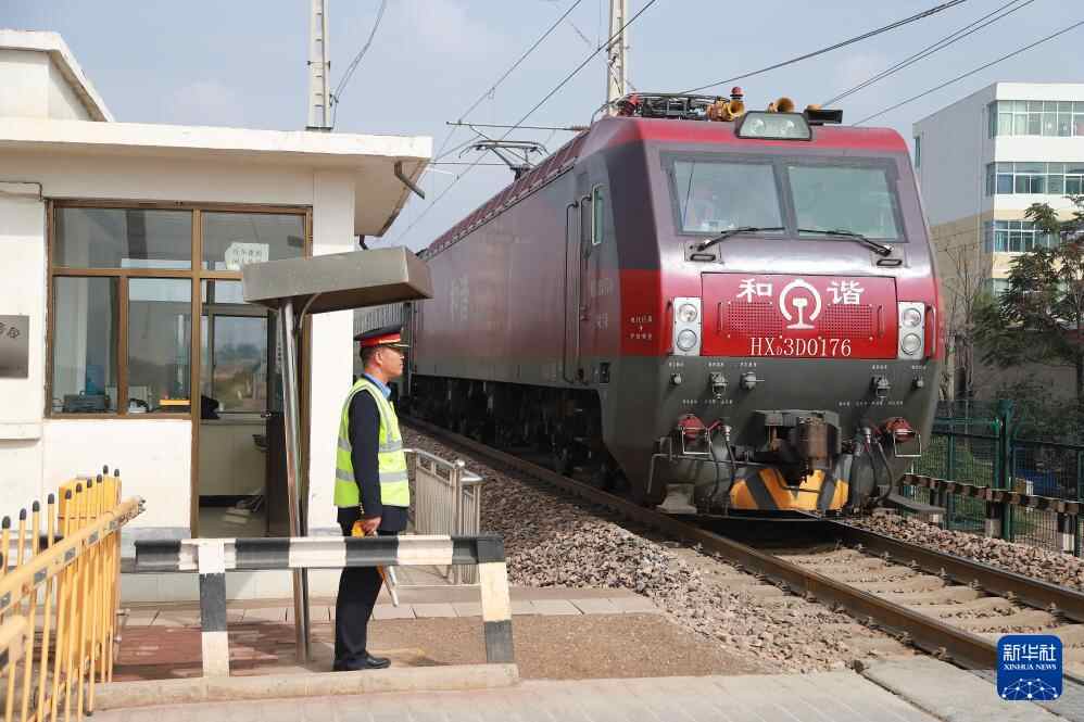 10月6日,在甘肃省皋兰县境内的包兰线铁路道口上,中国铁路兰州局集团有限公司兰州西工务段的工作人员在执勤。