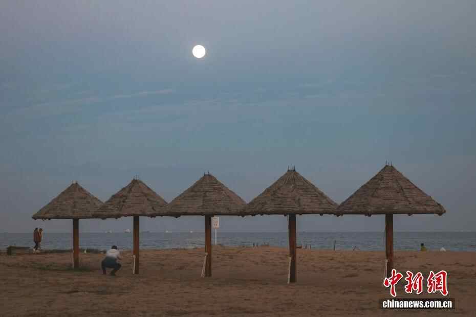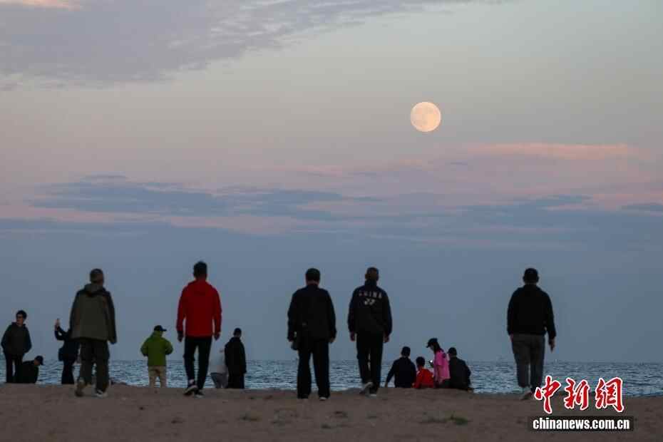 10月6日,中秋节,辽宁省东戴河“海上生明月”景观吸引游客观赏。