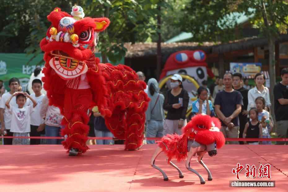 10月6日,江苏南京,“机器狗”在舞台上进行舞狮表演。国庆假期,南京汤山紫清湖旅游区上演文旅大戏,“机器人”跳舞、“机器狗”舞狮……精彩纷呈,吸引市民和游客在舒适的环境中快乐度假。
