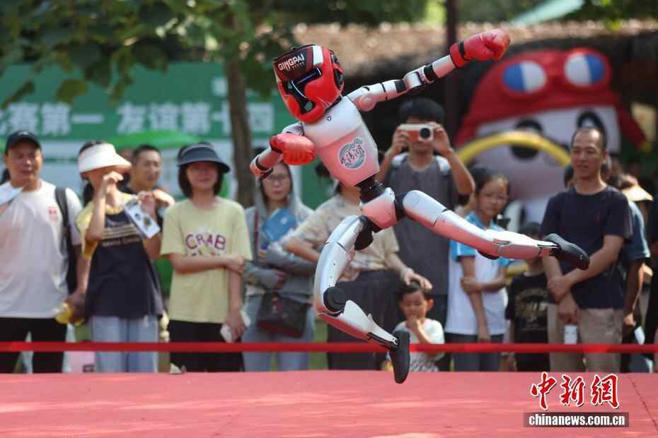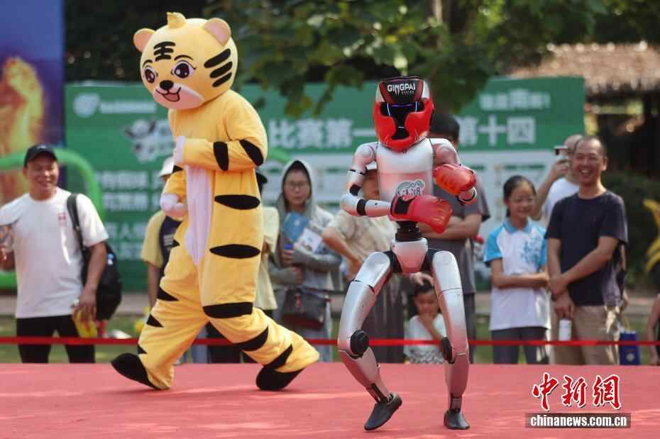 10月6日,江苏南京,“机器人”在舞台上进行拳击表演。国庆假期,南京汤山紫清湖旅游区上演文旅大戏,“机器人”跳舞、“机器狗”舞狮……精彩纷呈,吸引市民和游客在舒适的环境中快乐度假。