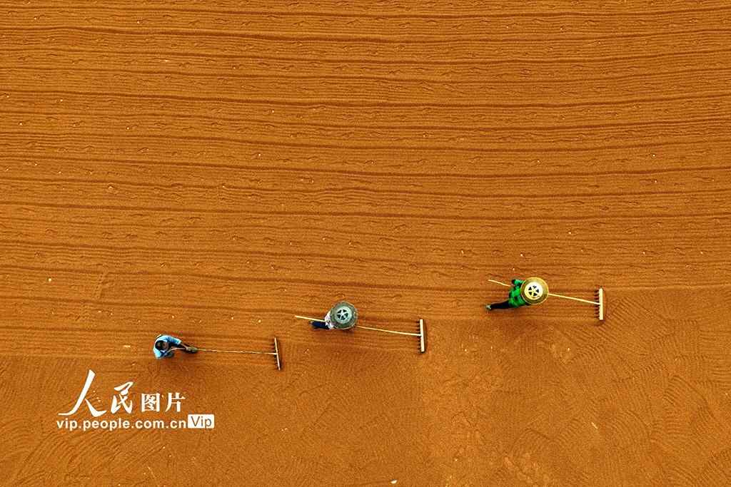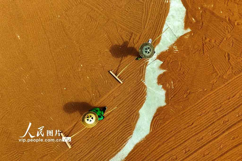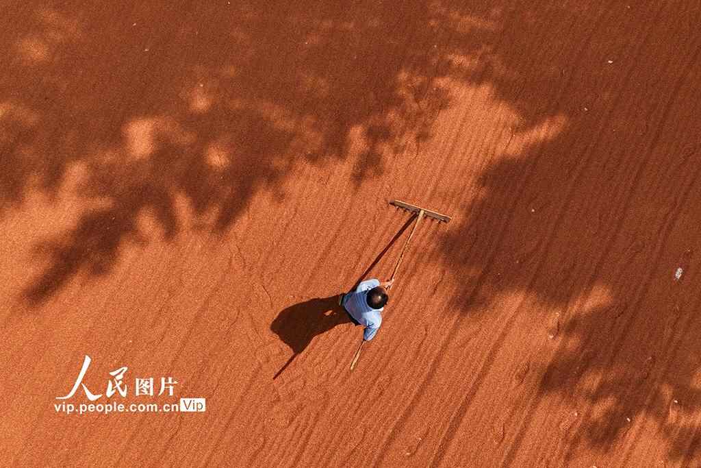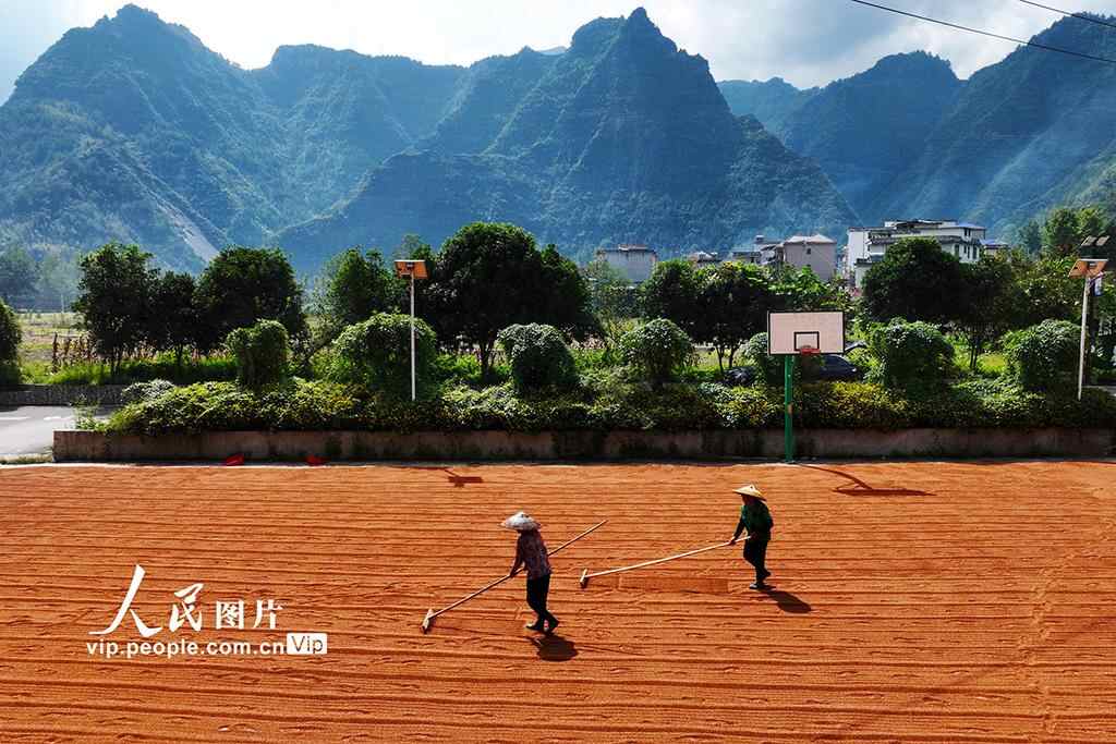 2025年10月5日,重庆市黔江区出现晴好天气,农民们抓住时机晾晒高粱等农作物,确保颗粒归仓。杨敏摄(人民图片网)