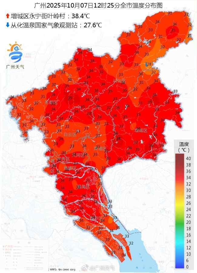 10月7日14时,广东省中北部已经出现35℃以上高温天气。
