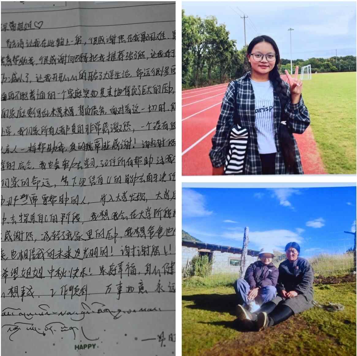 昂旺措姆出身普通牧民家庭,她以优异成绩考上大学,却因家中突发债务濒临辍学。“命运很残酷,一个普通家庭要背负巨额债务……是您选择了资助我上学。”昂旺措姆特别提到,江琛蕾的爱心资助不仅缓解了她的经济压力,更让她“开心地开始了大学生活”。如今她已逐渐适应校园,在信中立志:“将来也要去帮助需要帮助的人。”落款处,她写下真挚的中秋祝福,稚嫩的笔触与郑重的承诺交织,格外动人。