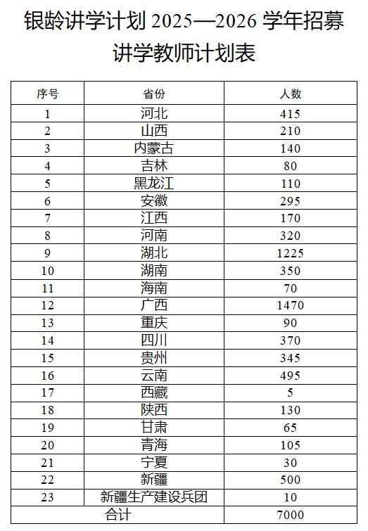 甘肃省在全国范围内公开招募2025-2026学年“银龄讲学计划”讲学教师,并公告有关事项: