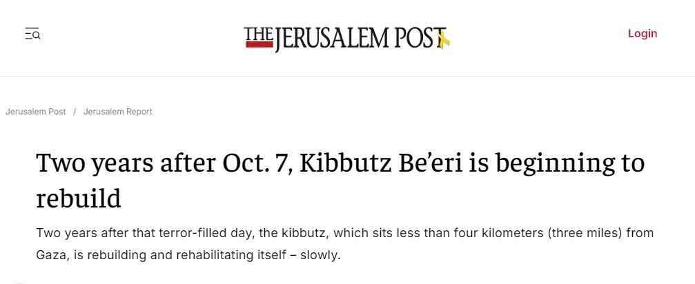 以色列媒体《耶路撒冷邮报》则在巴以冲突延宕两年之际,报道曾经遭到哈马斯袭击的以色列南部贝埃里社区的恢复重建问题,展现当地以色列民众在冲突之后的复杂心理:一方面对哈马斯的威胁仍心有余悸;另一方面也对以军两年前未能保护他们感到不满。