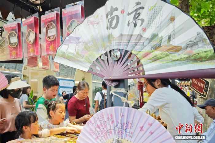 10月5日,江苏南京,游客带着孩子在长江路1912街区选购文创商品。据南京智慧旅游大数据监测平台显示,假期前五天,该市累计接待游客1406.4万人次。中新社记者 泱波 摄