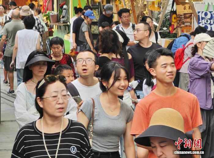10月5日,江苏南京,游客们在长江路1912街区游玩。据南京智慧旅游大数据监测平台显示,假期前五天,该市累计接待游客1406.4万人次。中新社记者 泱波 摄