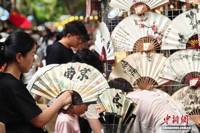 10月5日,江苏南京,游客在长江路1912街区选购文创商品。据南京智慧旅游大数据监测平台显示,假期前五天,该市累计接待游客1406.4万人次。中新社记者 泱波 摄