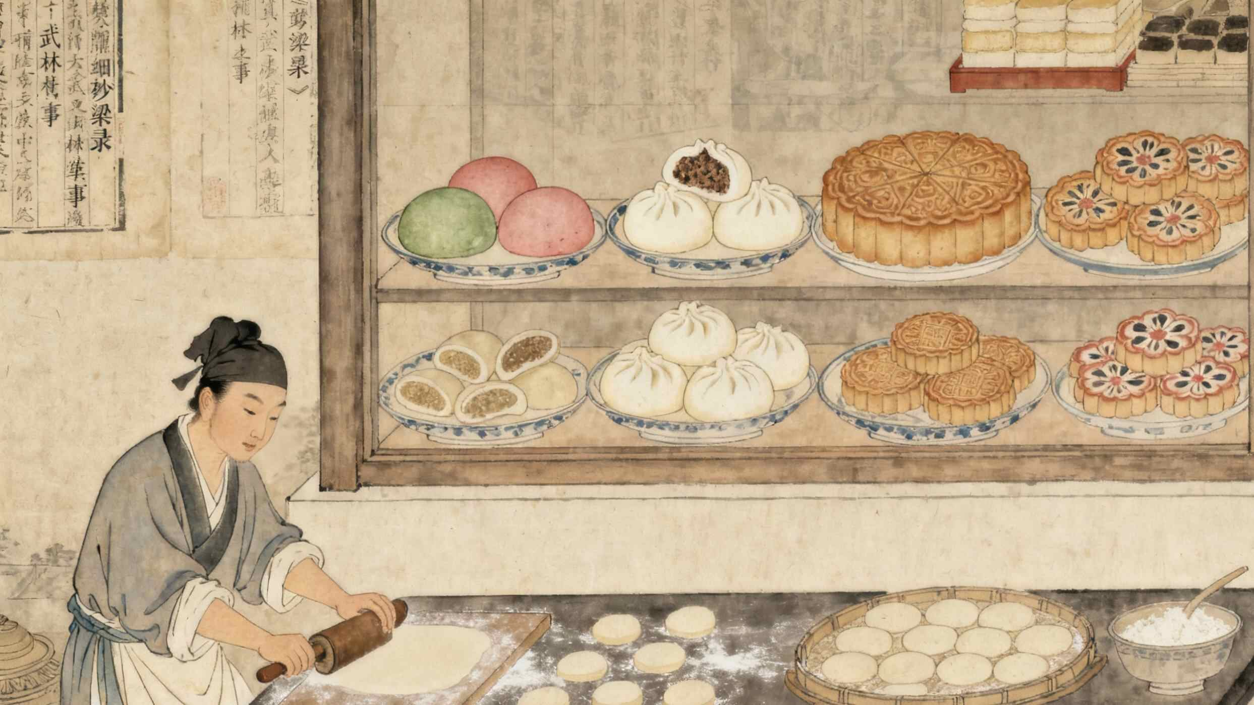 中国吃月饼习俗传说甚早,有说始于唐代,先在宫廷而后至民间,当时俗称“小饼”和“月团”。这当然甚是无稽,因为其时的小饼、月团多从形式上指团茶而言,并非饼饵之饼、月饼之月。也有说起源于明代,且与开国军师刘伯温有关,更是附会了。其实在早于明、迟于唐的宋代,倒是可以找到月饼起源的文献依据。宋末元初吴自牧《梦粱录》卷十六“荤素从食店 (诸包点心事件附)”条说:“市食点心,四时皆有,任便索唤,不误主顾。且如蒸作面行卖四色馒头、细馅大包子,卖米薄皮春茧、生馅馒头、餣子、笑靥儿、金银炙焦牡丹饼、杂色煎花馒头、枣箍荷叶饼、芙蓉饼、菊花饼、月饼、梅花饼、开炉饼……”同一时期周密的《武林旧事》卷六“糕”类下也有“月饼”一目,只是未明言是否中秋应节之物。