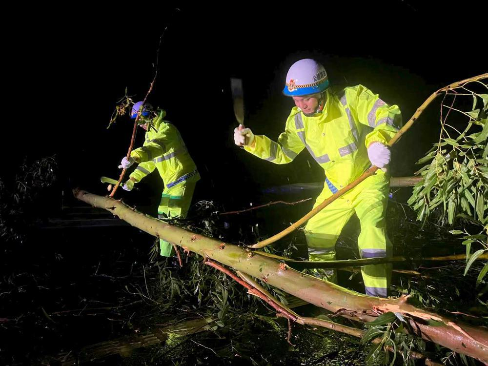 化湛管理处在所辖化湛高速、东雷高速、湛江机场高速、吴湛高速、南三岛大桥等路段投入路政、养护抢险清障人员326人次,投入施工车辆48台及100余套(台)清理设备,连续作战12小时,累计清理倒伏树木741棵,清理路面杂物29330平方米。