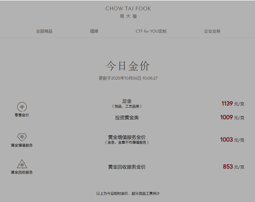 假期期间,国内部分黄金珠宝品牌的金饰价格延续上涨态势,多家品牌金店的足金首饰价格均突破了1100元/克。