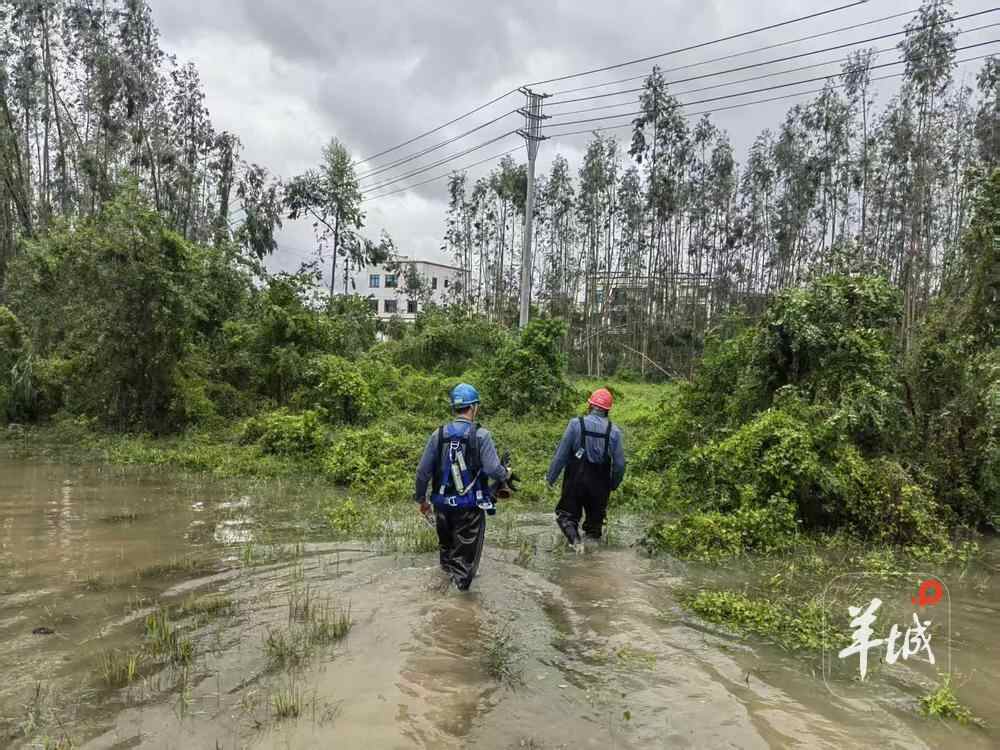 南方电网广东湛江雷州供电局抢修队伍也被一片“泽国”挡住了去路。“中秋团圆夜,绝不能让村民摸黑过节!”雷州供电局立即启动政企应急联动机制,向当地消防救援部门、镇政府发出紧急支援请求。唐家镇消防总指挥迅速响应,带领消防应急救援队伍携带救生装备及勘灾工具火速赶赴现场。