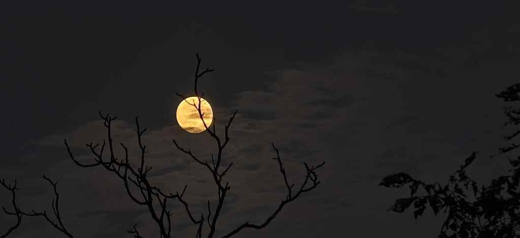 看!这轮中秋明月,并非“小时不识月,呼作白玉盘”的稚气,而是一轮饱满、圆润,带着些许蜜糖般暖黄色的大月亮。