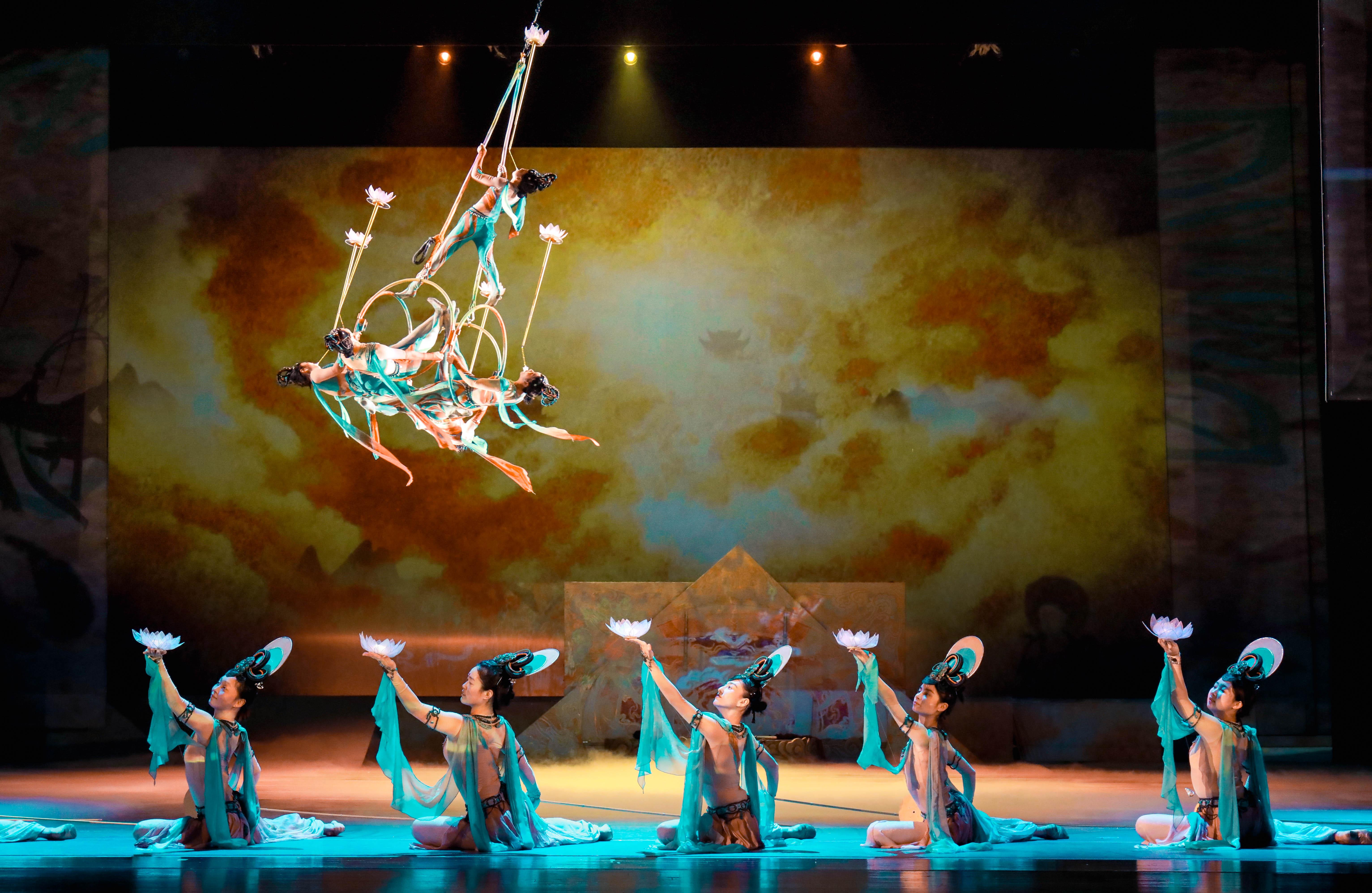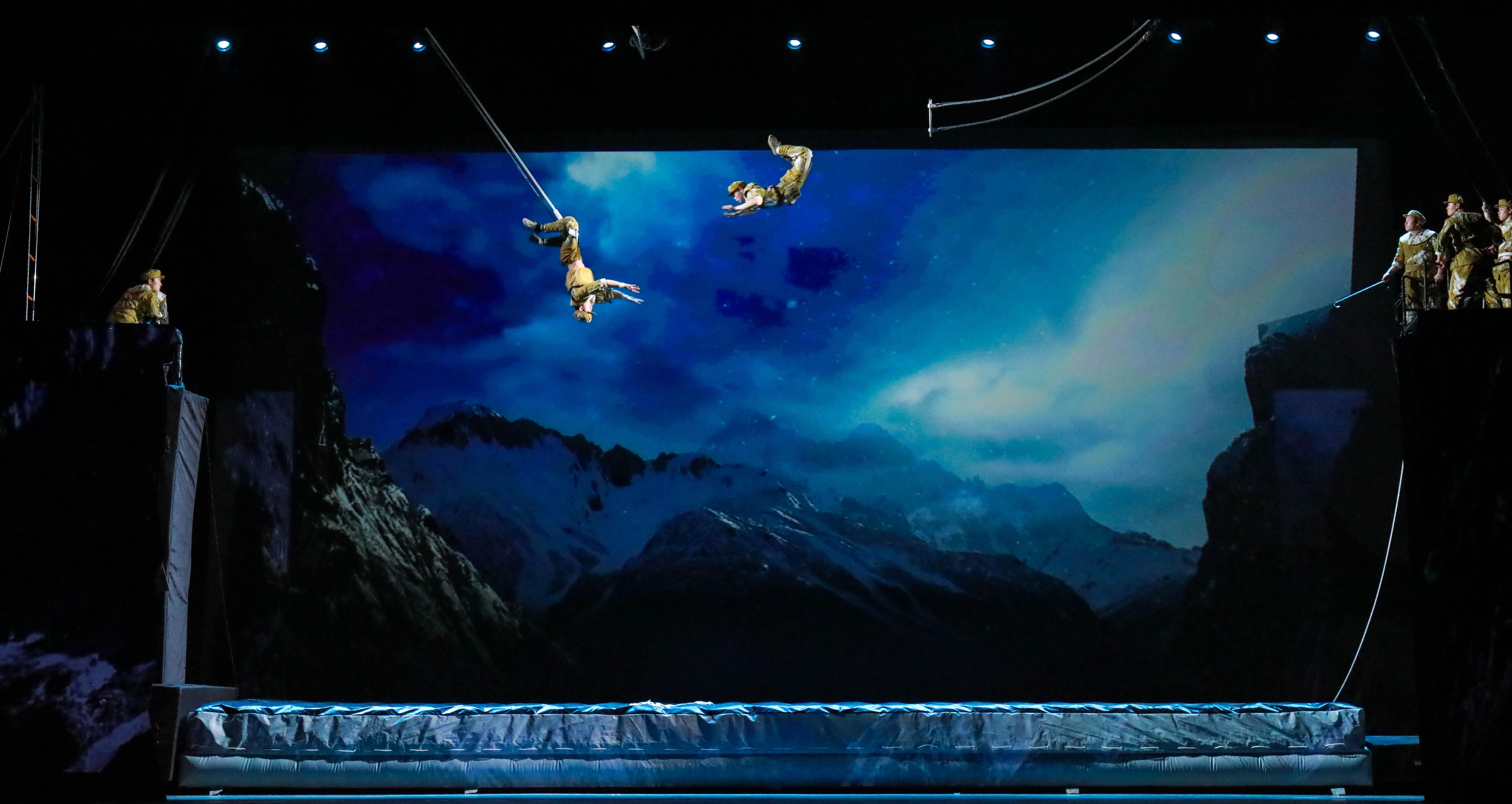 “这部剧既有浓厚的情感表达,也有惊险奇绝的视觉呈现。”梁弘钧向羊城晚报记者深入解读了剧中的表演元素,“例如新疆非遗项目‘达瓦孜’(高空走索),由当地团队演绎,技艺高精、表现震撼,还有‘飞人’等集体类的惊险节目贯穿全场;而像‘花之恋’这样的唯美造型,则借助杂技技巧,传递恋人在月光下情意香浓的意境,整体上实现了力量美、舞蹈美与情感美的‘三美合一’。”