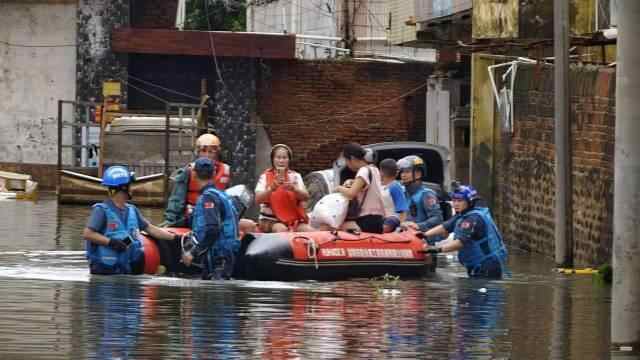 “我是本地人,昨晚水最深的时候有1.8米高,从昨天中午被困到现在。”6日上午10时许,黄先生被蓝天救援队转移出来,据他估计,昨晚附近大概一百户家庭被困。