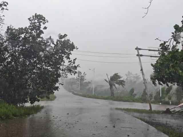 台风登陆后,记者在位于雷州半岛的遂溪县城里看到,路上几乎没有行人,有居民躲在自家窗户处拍摄摇曳的树木,也有路人因为风大无法继续骑车,只能把电动车放在路中间,自己找个安全的地方躲避风雨。