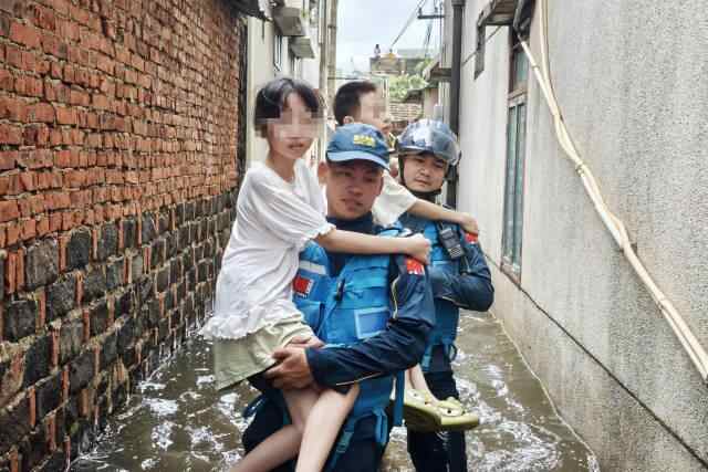 徐闻徐城街道育才路,救援队救出被困孩子。