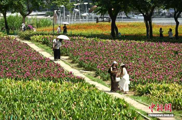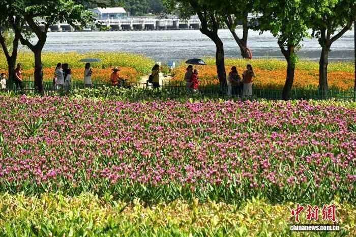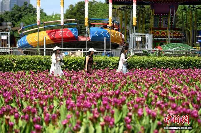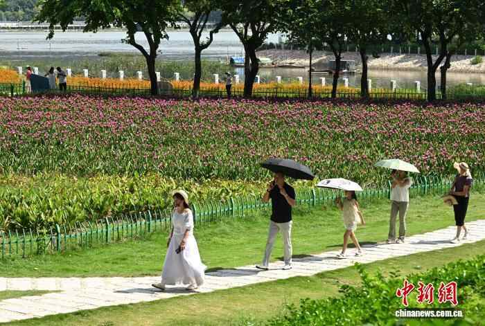 10月4日,游人在福州花海公园游玩、赏花,乐享国庆假期。中新社记者 吕明 摄