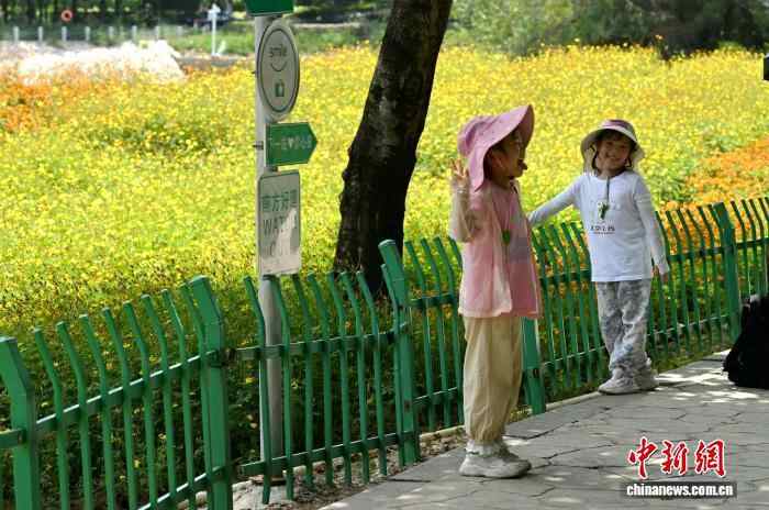 10月4日,小朋友在福州花海公园游玩、拍照,乐享国庆假期。中新社记者 吕明 摄