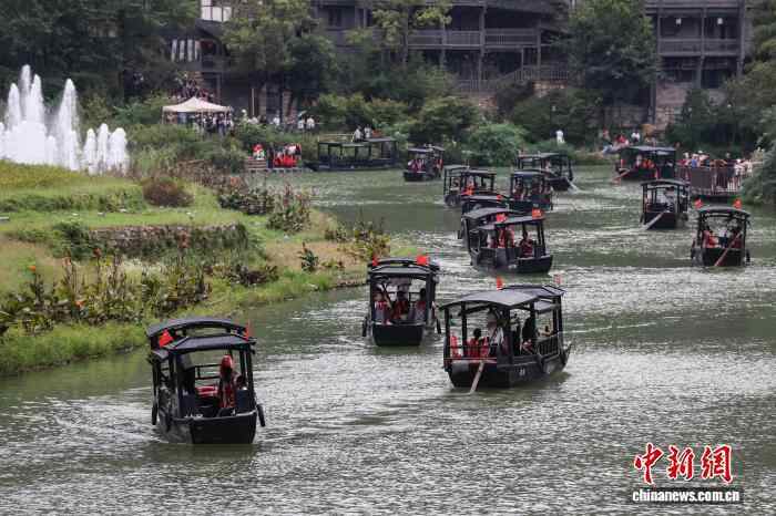 10月4日,游客在乌江寨乘船游览。中新社记者 瞿宏伦 摄