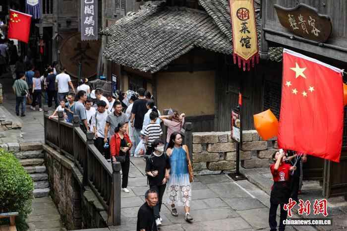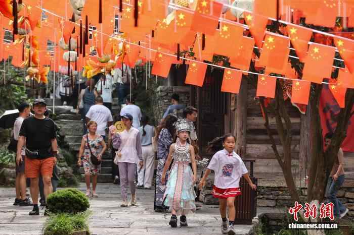10月4日,游客在乌江寨游览。中新社记者 瞿宏伦 摄