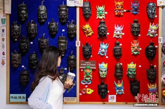 10月4日,乌江寨的傩戏面具吸引游客。中新社记者 瞿宏伦 摄