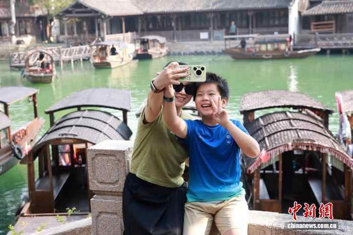 10月4日,游客拍照打卡水乡风景。孙杨洋 摄