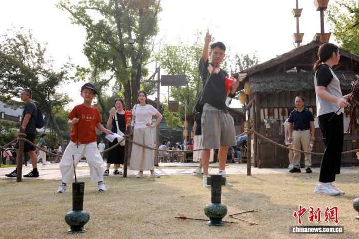 10月4日,游客与景区NPC互动游戏。 孙杨洋 摄