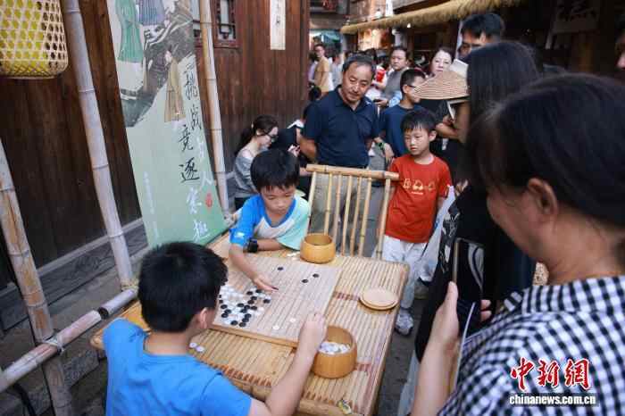 10月4日,两位小朋友体验宋代弈棋乐趣。孙杨洋 摄